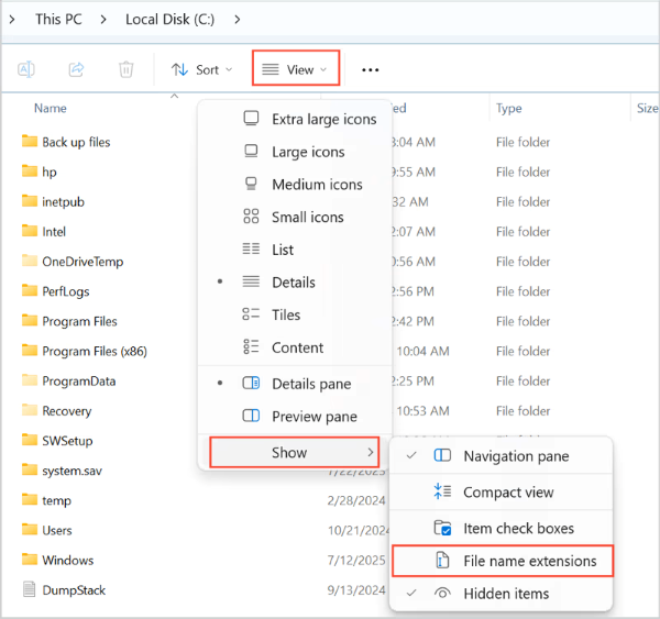 Ensure file name extensions are visible in File Explorer before proceeding.
